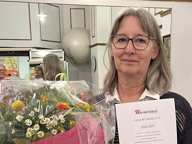 Vi uddanner løbende nye Mensendieck-undervisere. I lørdags blev Gitte fra Thisted færdiguddannet, og vi starter løbende nye hold.